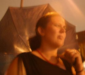 | The Color Guard played its first NYC show with new drummer Norie! Lalena made silver wings just for the occasion, and Keith borrowed Sean Sheridan's Canon 10D to capture the experience. Thanks, Sean and Keith! |