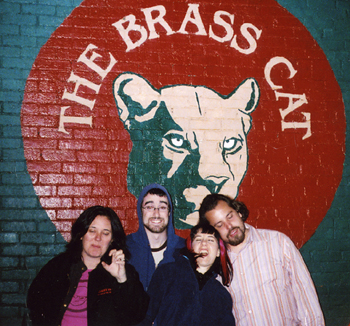 Later we all hung out down the street at a place called The Brass Cat. Hence Jeanne's snarly-cat imitation. ![]() Eventually it was time to roll out the sleeping bags and teddy bears! Matt, being a gentleman and all, hosted us at his place. ![]() Thanks for everything, Tizzy! We were sad to have to move on to the next town. But alas, such is the life of musicians on that long, lonesome road. 'Course, we didn't yet know what adventures awaited us in Providence.... |