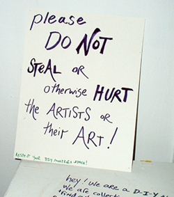 Spring Tourette 2005 Thursday, April 28: For our first night out, we rendezvoused (or however you spell that) in Easthampton, Massachusetts with our buddies Tizzy! You probably remember them from previous episodes of "The Color Guard on Tour." We played at our familiar Easthampton home base, the Flywheel Art Space. |