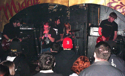 Massachusetts Tourette, December 2002 (page 1 of 2) On December 12 (Day of the Virgin of Guadalupe) we headed up to Boston for our show at the Middle East Upstairs with Medea Connection, The Hidden, Black Helicopter, and Bantam. The Boston Phoenix called us "NYC's emo-tallic scrappers." |
