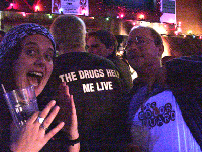 New friends Sly and Delsin (who is a poet and scrawled out a pretty good one about beer while watching the bands...and the people).