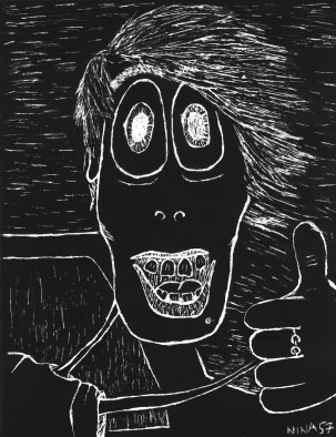 | Nina made scratchboard art to pass time in the car, and commemorate the trip. |