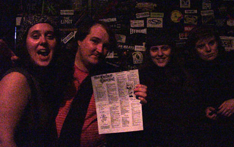 ![]() Jeanne with her friends Conrad, Barbara and Maggie. Conrad, who proudly brandishes a Color Guard lyric sheet, has a website where you can check out his poetry. Then Tizzy rocked the house! |