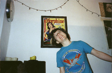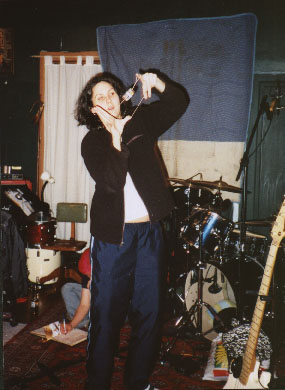 Chris does good yo-yo tricks. We listened hard (above right) and pronounced the basic tracks done. Now we moved to Hillary's studio Old Wave Recording in Manhattan to do the vocals and overdubs (below). Hillary has good posters...not to mention ever-changing hair! |